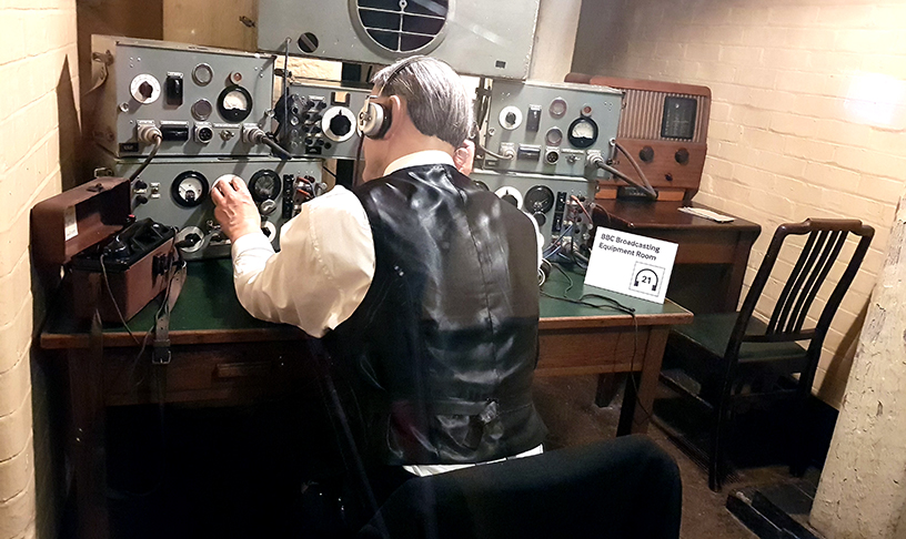 От стаята, разказваща ни за защитната плоча, влизаме в друг коридор, успореден на този със спалните помещения. Тук са подредени работните стаи, в които е кипял неуморен труд. Разглеждаме стаята на радиостанцията на BBC и нейния оператор (снимката от тук сложих за водеща на поста), на машинописките, на военните…